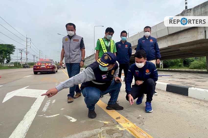 พบแล้ว สาเหตุรถ 9 คันตกถนนสุวินทวงศ์ “สารเคมีจากรถบรรทุก กร่อนสีเส้นจราจร”