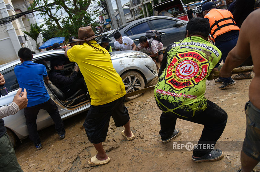 ร้อยเอกธรรมนัส พรหมเผ่า รองนายกรัฐมนตรี และรัฐมนตรีว่าการกระทรวงเกษตรและสหกรณ์ ในฐานะที่ได้รับมอบหมายให้รับผิดชอบพื้นที่น้ำท่วมจังหวัดสงขลา นำทีมงาน จิตอาสา และเจ้าหน้าที่กู้ภัย จัดระเบียบรถยนต์ของประชาชนที่จอดไว้บนสะพานข้ามคลองอู่ตะเภา โดยมีนายพิพัฒน์ รัชกิจประการ รองนายกรัฐมนตรีและรัฐมนตรีว่าการกระทรวงคมนาคม ร่วมด้วย เพื่อเปิดทางให้รถยกสูงและเรือเข้าไปช่วยเหลือประชาชนที่ติดค้างและแจกอาหารให้กับประชาชนในเขต 8 ได้