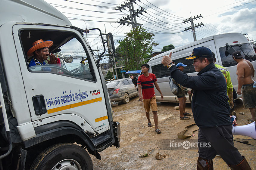”ขออย่าพูดว่าสายเกินไปในการช่วยเหลือประชาชน เพราะเราทำงานกันไม่มีหยุด เมื่อคืนผมนอนตี 2 ตื่นตี 5 เพื่อประชุมสถานการณ์ ขอให้สื่อมวลชนให้กำลังใจจิตอาสาและหน่วยงานราชการ ขออย่าด่าหรือว่าเขา เขาเข้าไปไม่ได้เพราะน้ำเชี่ยว เมื่อคืนเรือสูญหาย 1 ลำ เมื่อเช้าจะต้องเข้าไปกู้“