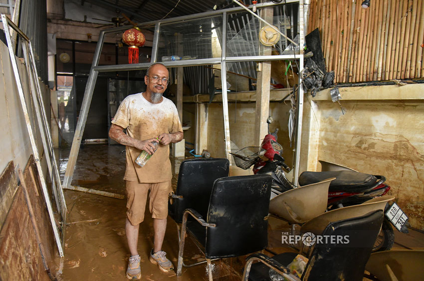 นายฌาฆีภัตฐ์ เพชรคง เจ้าของโรงเรียนศิลโปไทย พา The Reporters ดูความเสียหายพบว่ามีรถยนต์ที่จมน้ำ 1 คัน กระจกแตก และทรัพย์สินภายในได้รับความเสียหายจากดินโคลน ซึ่งยังไม่สามารถประเมินมูลค่าได้ ก่อนหน้านี้ระดับน้ำบริเวณนี้สูงมิดหัวและเพิ่งลดระดับลงเมื่อคืนที่ผ่านมา จึงตัดสินใจเข้ามาทำความสะอาดตั้งแต่เวลา 05.00 น.ของเช้าวันนี้