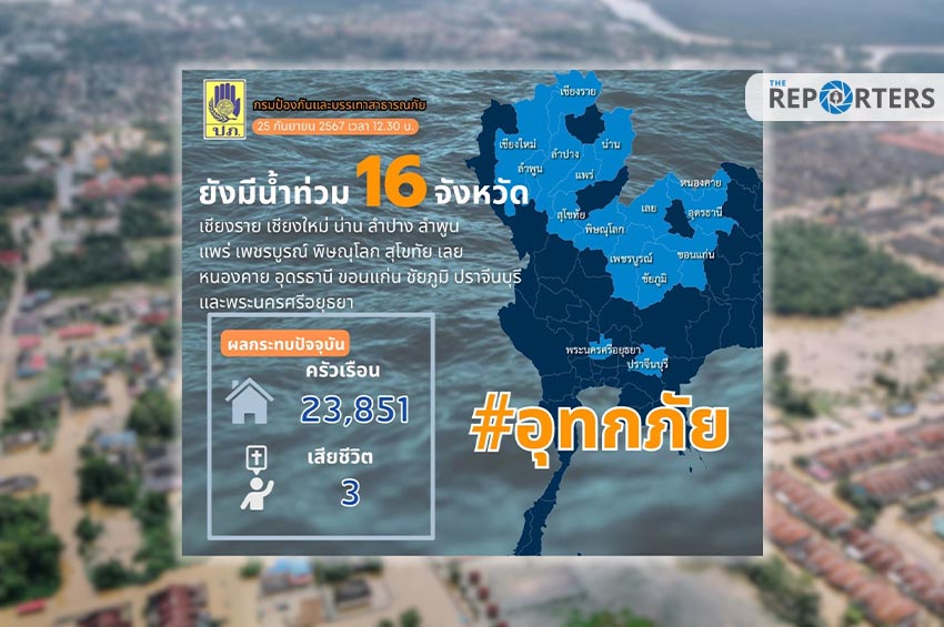 ปภ.รายงานมีสถานการณ์น้ำท่วมพื้นที่ 16 จังหวัด ได้รับผลกระทบ 23,851 ครัวเรือน