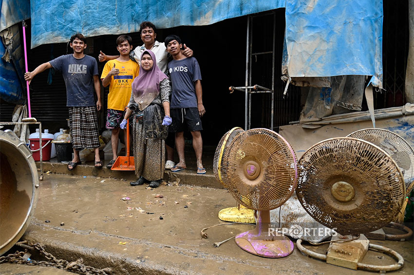 ผู้ประสบภัยเร่งเก็บของที่เสียหายจนไม่สามารถใช้การได้ ขณะที่รถที่จมน้ำจอดเสียหายตามกลางถนน