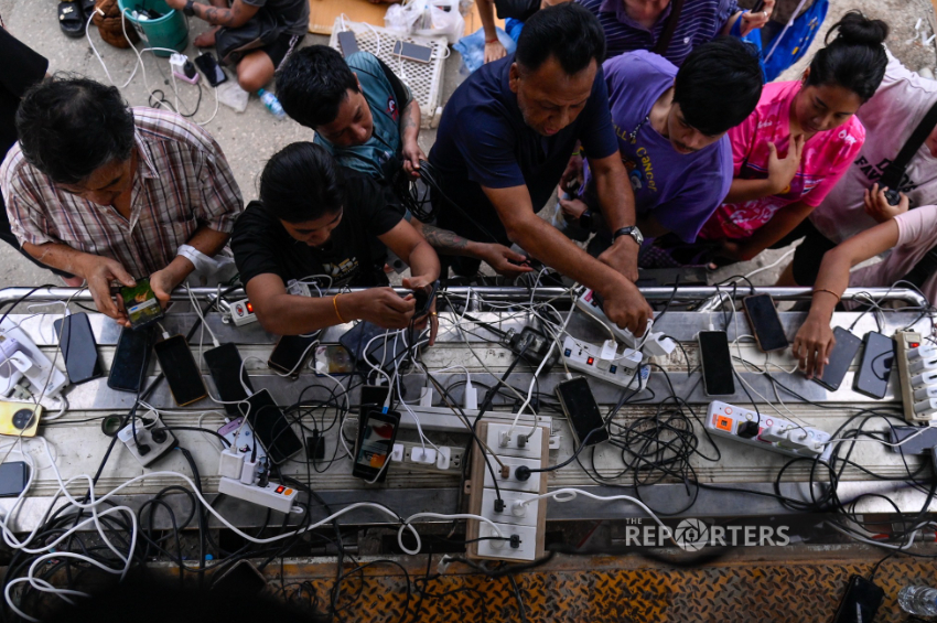 ตามทางเดินยังพบชาวบ้านจำนวนมากต่อคิวชาร์จโทรศัพท์มือถือจากเครื่องปั่นไฟที่ภาคเอกชนจุดบริการให้ แม้เป็นเพียงพลังงานชั่วคราว แต่ช่วยให้ผู้ประสบภัยติดต่อญาติ–ประสานความช่วยเหลือได้สะดวกขึ้น