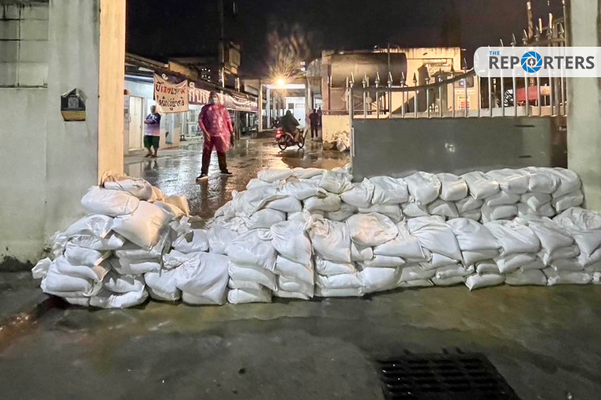 รพ.มหาราช โคราช ระดมกระสอบทรายป้องกันน้ำ หลังน้ำในลำตะคองเพิ่มต่อเนื่อง