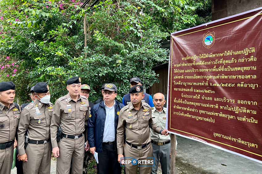 พล.ต.อ.สุรเชษฐ์ให้สัมภาษณ์ว่า ในส่วนของที่ดินกว่า 60 ไร่ที่ออกเกินจาก น.ส.3 จำนวน 80 ไร่ ตรวจพบว่ามีการบุกรุกพื้นที่อุทยานแห่งชาติตะรุเตา จำนวน 8 จุด ซึ่งได้เรียกตัวบุคคลที่เป็นเจ้าของสถานประกอบการมารับทราบข้อกล่าวหาแล้ว นอกจากนี้ยังมีในส่วนของการบังคับคดี 44 คดี โดยมี 22 คดีที่ศาลฎีกาได้พิพากษาแล้ว และ 8 คดีที่เจ้าตัวยังไม่เพิกถอนและยื่นอุทธรณ์ อย่างไรก็ตามได้อาศัยอำนาจกรมอุทยานฯ แจ้งให้เขาออกจากพื้นที่ภายใน 15 วันถ้าไม่ออกเราก็จะช่วยเพิกถอน ซึ่งผู้ที่บุกรุกทั้งหมดต้องถูกดำเนินคดีอาญา