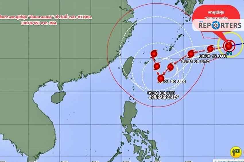 วันที่ 30 ส.ค. 65 เคลื่อนตัวในทะเล ทวีกำลังแรงจากพายุไต้ฝุ่นระดับ 3 เป็นระดับ 4