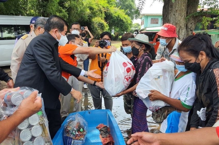 นอกจากนี้ รมช.มหาดไทยได้ลงพื้นที่มอบถุงยังชีพ และเยี่ยมให้กำลังใจครอบครัวประชาชน ผู้ประสบอุทกภัยที่ได้รับผลกระทบจากแม่น้ำเอ่อล้นเข้าท่วมบ้านเรือน ในพื้นที่ จ.สระบุรีที่ ต.แสลงพัน อ.วังม่วงพื้นที่ จ.อยุธยา ที่ ต.บ้านแพน อ.เสนา และพื้นที่ จ.ปทุมธานี ที่ ต.บ้านกระแซง อ.เมืองปทุมธานี เพื่อเป็นขวัญและกำลังใจแก่ผู้ประสบภัยด้วย โดยได้สั่งการให้ทางนายอำเภอและองค์กรปกครองส่วนท้องถิ่นเข้าช่วยอพยพเคลื่อนย้ายประชาชนไปที่ปลอดภัยในกรณีที่มีปริมาณน้ำเพิ่มขึ้น พร้อมกำชับให้เฝ้าระวังสถานการณ์น้ำตลอด 24 ชั่วโมง