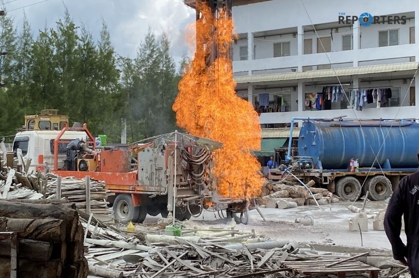 ระทึก เจาะบาดาลเจอบ่อก๊าซ ไฟลุกคลอกคนงานเจ็บ 2