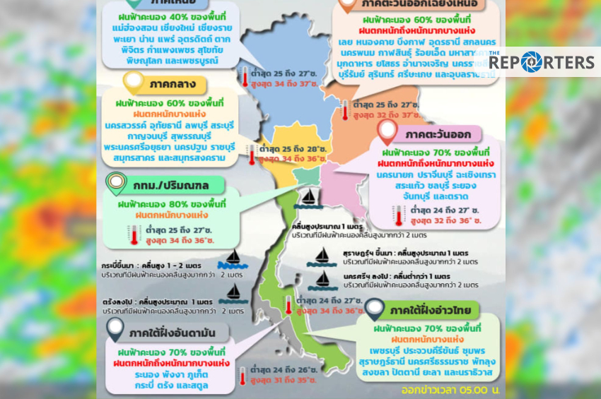 พยากรณ์อากาศวันนี้ ฝนตกหนักทั่วไทย ส่วน กทม. คาด เกิดฝนฟ้าคะนอง 80% ของพื้นที่