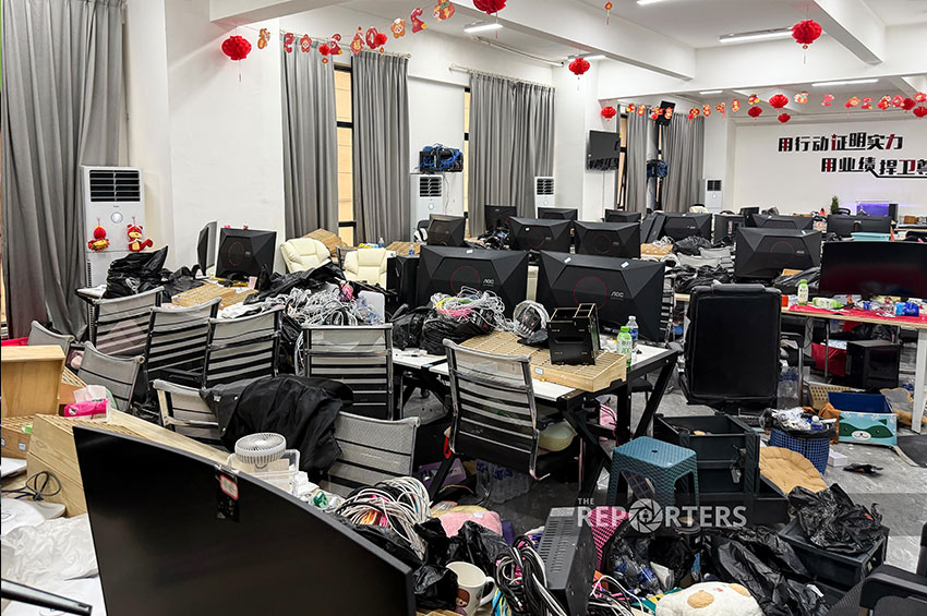ทันทีที่เข้าไปในอาคารที่ทำการสแกมเมอร์ แต่ละชั้นจะแบ่งออกเป็นห้อง ซึ่งในห้องจะมีคอมพิวเตอร์ และโต๊ะทำงานอยู่ประมาณห้องละ 30 – 50 เครื่อง และมีชาวต่างชาติทำงานอยู่ โดยได้หลบอยู่ที่ใต้โต๊ะ ซึ่งไม่ได้มีการขัดยืนแต่อย่างใด