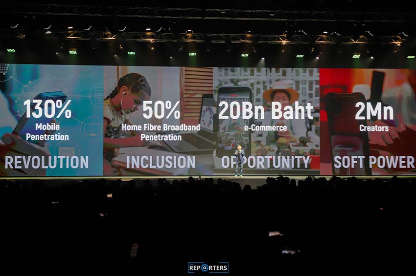 “เพราะวันนี้สถานการณ์โลกอยู่ท่ามกลางความท้าทายที่ส่งผลกระทบในวงกว้าง ไม่ว่าจะเป็นความเสี่ยงจากสงครามที่เกิดจากภูมิรัฐศาสตร์, การปิดกั้นทางการค้าระหว่างประเทศ, ปัญหาพลังงาน, ภาวะเงินเฟ้อ, ปัญหาสภาพแวดล้อม เป็นต้น ดังนั้น AIS จึงพร้อมที่จะเป็นส่วนหนึ่งในการสร้างความแข็งแกร่งและยั่งยืนของประเทศไทย ผ่านการวิวัฒน์ครั้งสำคัญของโลกดิจิทัลและอุตสาหกรรมโทรคมนาคมไทย THE NEXT EVOLUTION ที่จะก้าวสู่การพลิกโฉมประสบการณ์การใช้งานของลูกค้าในทุกมิติ