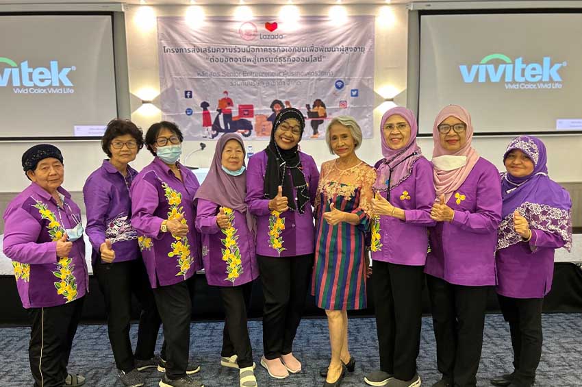 สำหรับโครงการส่งเสริมความร่วมมือ ภาคธุรกิจเอกชน เพื่อพัฒนาผู้สูงอายุ “ติดปีกทักษะดิจิทัล ต่อยอดธุรกิจออนไลน์ หลักสูตร “Senior Entrepreneur ผู้ประกอบการวัยเก๋า” เป็นส่วนหนึ่งของข้อตกลงความร่วมมือ ระหว่างกระทรวงการพัฒนาสังคม และความมั่นคงของมนุษย์ ในการเสริมทักษะด้านการตลาดอีคอมเมิร์ซ แก่ผู้ประกอบการในกลุ่มเปราะบาง อาทิ ผู้พิการ แม่เลี้ยงเดี่ยว และผู้สูงอายุ สำหรับหลักสูตรเพื่อผู้สูงอายุ การอบรมได้มุ่งเน้นการเสริมทักษะ ในการจัดการร้านค้าออนไลน์ การใช้เครื่องมือทางการตลาดพื้นฐาน และการเล่าเรื่องสินค้าให้โดดเด่น โดยมีผู้สูงอายุเข้าร่วมทั้งสิ้น 340 คน จากกรุงเทพฯ อยุธยา ชลบุรี ขอนแก่น ลำปาง และภูเก็ต ส่วนใหญ่เป็นกลุ่มผู้ประกอบการสินค้าหัตถกรรม ผลิตภัณฑ์เครื่องใช้ อาทิ ผ้า และกระเป๋า รวมถึงสินค้าอาหารแปรรูปต่างๆ