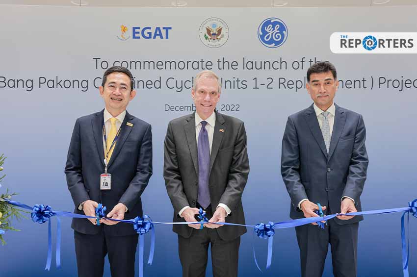 เอกอัครราชทูต โรเบิร์ต เอฟ. โกเดค เอกอัครราชทูตสหรัฐอเมริกา ประจำประเทศไทย จับมือร่วมกับ นายบุญญนิตย์ วงศ์รักมิตร ผู้ว่าการการไฟฟ้าฝ่ายผลิตแห่งประเทศไทย พร้อมด้วย นายราเมช สิงการาม ประธานเจ้าหน้าที่บริหารและกรรมการผู้จัดการใหญ่ ธุรกิจพลังงานก๊าซ ประจำภูมิภาคเอเชีย จีอี ร่วมกันเปิดพิธีการเดินเครื่องเชิงพาณิชย์ ของโรงไฟฟ้าทดแทนโรงไฟฟ้าบางปะกงชุดที่ 1 และ 2 ของ กฟผ.เมื่อเร็วๆนี้ เพื่อสานต่อนโยบาย การลดการปล่อยก๊าซคาร์บอนไดออกไซด์ ของประเทศให้เป็นกลาง ภายในปี ค.ศ. 2050 (พ.ศ. 2593