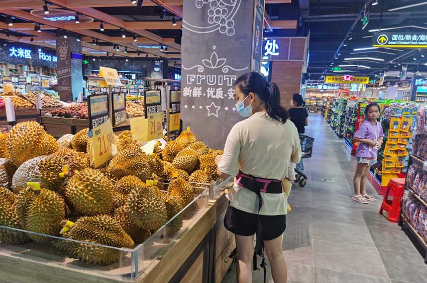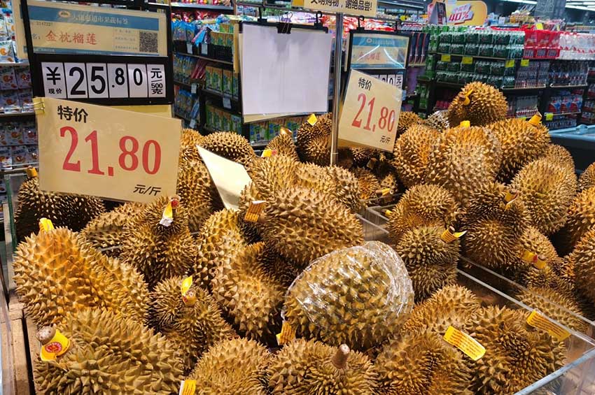ปัจจุบัน “ทุเรียนไทย” ปรากฏให้เห็นตามซูเปอร์มาร์เก็ตขนาดใหญ่หลายแห่งในนครหนานหนิง เขตปกครองตนเองกว่างซีจ้วงทางตอนใต้ของจีน หลังทางการท้องถิ่นเปิดเส้นทางนำเข้าผลไม้ระดับชาติภายใต้ความตกลงหุ้นส่วนทางเศรษฐกิจระดับภูมิภาค (RCEP) อย่างเป็นทางการ