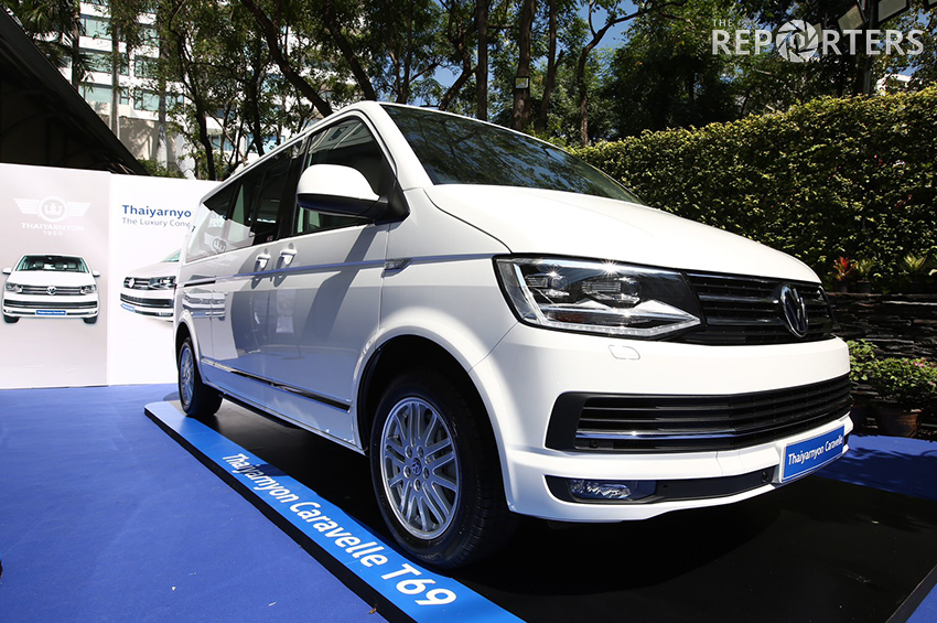 ประธานกรรมการบริหาร กลุ่มบริษัทไทยยานยนตร์ เปิดเผยว่า ‘Thaiyarnyon Caravelle T69’ ยนตกรรมรุ่นพิเศษฉลอง 69 ปีของไทยยานยนตร์ พัฒนาจากการสำรวจข้อมูลความต้องการของลูกค้าที่ใช้งานจริง โดยเน้นการออกแบบที่หรูหรา แต่ตอบโจทย์การใช้งานได้อย่างครอบคลุม เช่น จากความต้องการความเป็นส่วนตัว จึงออกแบบให้มีกระจกกั้นห้องโดยสารส่วนหน้า-ส่วนหลัง ควบคุมด้วยระบบไฟฟ้า มี Safety Sensor ตรวจจับสิ่งกั้นขวางเพื่อความปลอดภัย ไม่ต้องกังวลว่ากระจกจะหนีบมือ โดยผลิตด้วยกระจก Laminated Glasses ที่ปิดกั้นการเดินทางของเสียงทำให้โซนห้องโดยสารส่วนหลังมีความเป็นส่วนตัวสูง หรือจากความต้องการในการควบคุมระบบความบันเทิงภายในรถอย่างสะดวกสบาย จึงได้พัฒนาแอปพลิเคชั่น Thaiyarnyon Application เพื่อให้สามารถควบคุม จอ LED Screen ได้ในจุดเดียว ทั้งการ ปรับขึ้น–ลง การลดความสว่าง หน้าจอได้หากไม่ต้องการแสงรบกวน ปรับแต่งเสียงตามความต้องการด้วย Equalizer ด้วยระบบเครื่องเสียงคุณภาพสูง Surround รอบทิศทาง และสามารถใช้งานความบันเทิง Online ทั้งการชมโทรทัศน์ ฟังวิทยุ และชม VDO Online ผ่านระบบ Chromecast และเข้าใจแม้แต่ความต้องการในการเช็คความเรียบร้อยบนในหน้า หรือเครื่องแต่งกาย ด้วยระบบกระจกที่มีไฟ LED สามารถแต่งหน้าได้ระหว่างการเดินทางโดยสะดวก
