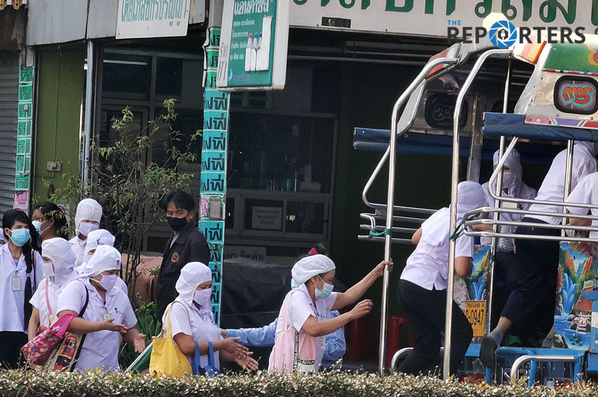 นายสิริบูรณ์ ทองบางเกาะ นายกองค์การบริหารส่วนตำบลท่าทราย อ.เมือง จ.สมุทรสาคร พร้อมเจ้าหน้าที่เตรียมความพร้อมในการตั้งด่านควบคุมการเดินทางเข้าออกของแรงงาน และประชาชนในพื้นที่ตำบลท่าทราย บริเวณหน้าบริษัทกุยหลิง เนื่องจากผู้ที่อยู่ในตำบลท่าทรายที่จะเดินทางไปกรุงเทพฯ เพชรบุรี มหาชัย แม่กลอง ก็จะต้องออกจุดนี้เป็นทางหลัก ทั้งนี้ผู้จะเดินทางข้ามพื้นที่ต้องแสดงใบอนุญาต ที่ขออนุญาตจากส่วนท้องถิ่นก่อน ซึ่งก็เป็นไปตามกฎหมายในพื้นที่ควบคุม