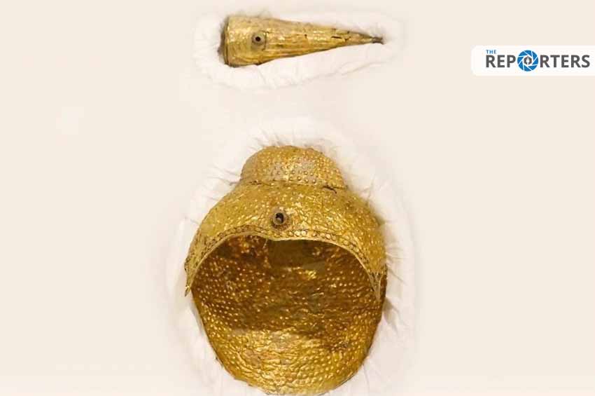 สำหรับ ครอบพระเศียรทองคำนี้ เป็นเครื่องประดับพระเศียรพระพุทธรูปทำจากทองคำ 95 % ประกอบด้วยส่วนครอบพระเศียรกว้าง-ยาว 14 x 17.6 ซม. หนัก 12.7 กรัม และส่วนพระรัศมีสูง 12.7 ซม. เส้นผ่าศูนย์กลาง 4 ซม. หนัก 29.9 กรัม ใช้เทคนิคดุนทองและตีทอง เบื้องต้นสันนิษฐานว่า เป็นโบราณวัตถุศิลปะล้านนา อายุราวพุทธศตวรรษที่ 20-21 ขณะนี้ กรมศิลปากรได้เก็บรักษาไว้ที่คลังกลางพิพิธภัณฑสถานแห่งชาติ เพื่อการศึกษาและจะนำจัดแสดงในนิทรรศการต่อไป
