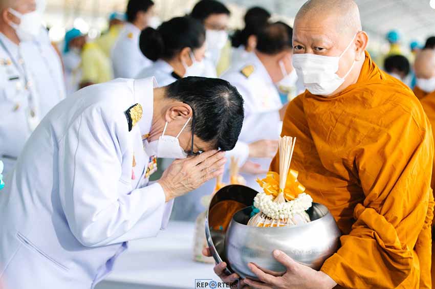 นายกรัฐมตรี และคณะทำบุญตักบาตรพระสงฆ์ 91 รูป ถวายเป็นพระราชกุศล