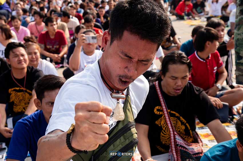 บรรยากาศภายในเต็มไปด้วยชาวไทย และต่างชาติจากทั่วสารทิศร่วมพิธีการสักยันต์บนร่างกายถึงแม้ว่าหลวงพ่อเปิ่น ฐิตคโณ จะมรณภาพตั้งแต่ปี 2545 แต่เหล่าผู้ศรัทธาในศาสตร์แห่งการสักยันต์ ยังคงเดินทางมาร่วมพิธีและยังคงสืบทอดการสักยันต์ตามตำราของหลวงพ่อเปิ่นไว้อย่างสมบูรณ์