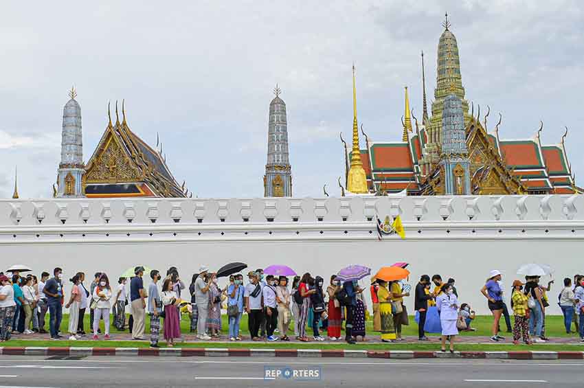The Reporters สำรวจบรรยากาศเช้าวันนี้ มีประชาชนทั้งชาวไทยและชาวต่างชาติ ทยอยเข้าพระบรมมหาราชวังทางประตูสวัสดิโสภา ตรงข้ามกระทรวงกลาโหม เพื่อเข้าชมปราสาทพระเทพบิดร โดยมีเจ้าหน้าที่ตำรวจและจิตอาสาพระราชทาน ๙๐๔ จัดระเบียบคัดกรอง ตรวจสอบบัตรประจำตัวประชาชนสำหรับคนไทย และหนังสือเดินทางสำหรับคนต่างชาติ ก่อนรับสติกเกอร์ติดเสื้อ ปฏิบัติตามมาตรการทางสาธารณสุข และมาตรการในการเข้าชม คือ ผู้ชายห้ามสวมกางเกงยีนส์ ผู้หญิงต้องสวมผ้าถุงหรือกระโปรงยาวคลุมเข่า งดบันทึกภาพด้านในปราสาท แต่สามารถบันทึกภาพด้านนอกปราสาทเพื่อเป็นที่ระลึกได้