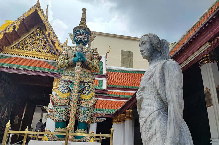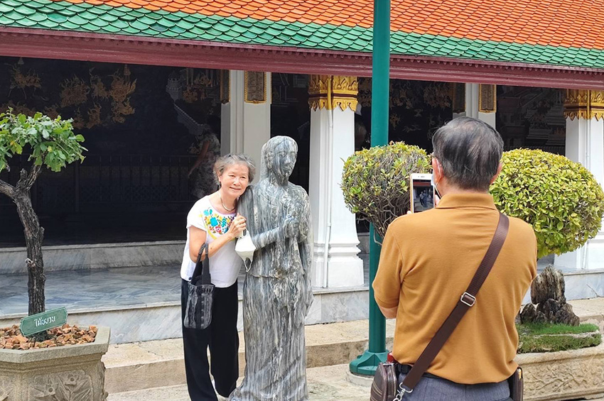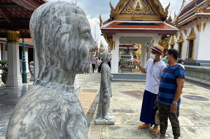 บรรยากาศช่วงหยุดยาวที่วัดพระศรีรัตนศาสดาราม นักท่องเที่ยวทั้งชาวไทย และต่างชาติเดินทางมาชมความงามตุ๊กตาหินแกะสลักโบราณกันอย่างคึกคัก โดยตุ๊กตาหินถูกนำมาจัดแสดงรอบพระศรีรัตนเจดีย์ เป็นตุ๊กตาหินรูปคนหลายเชื้อชาติ ทั้งชาวยุโรป ชาวไทย และชาวจีนที่มีการสลักภาษาจีนไว้ด้านหลังและด้านข้างของตุ๊กตาด้วย