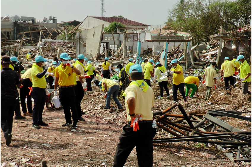 ผู้ว่าฯ นราธิวาส ร่วมจิตอาสาเคลียร์พื้นที่จากเหตุโกดังพลุระเบิด