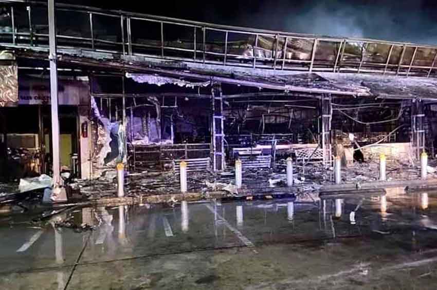 จุดที่ 2. 7-11 ภายในปั๊มจำหน่ายน้ำมันเชื้อเพลิง ปตท.ซึ่งตั้งอยู่ฝั่งตรงกันข้ามตลาดต้นไทร ซึ่งได้รับความเสียหายทั้งหมดเช่นกัน และในเบื้องต้นคาดว่าคนร้ายใช้ระเบิดเพลิงไปซุกไว้ในชั้นวางสินค้าเช่นกัน