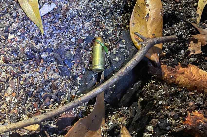 เมื่อถึงจุดเกิดเหตุพบรถจักรยานยนต์ยี่ห้อฮอนด้าคลิก สีแดง ไม่ติดแผ่นป้ายทะเบียน ล้มตะแคงอยู่ข้างเสาไฟฟ้าริมถนน โดยมีกองเลือดจำนวนหนึ่งตกอยู่ และปลอกกระสุนปืนพก ขนาด 9 มม. ตกอยู่จำนวน 1 ปลอก ส่วนที่บริเวณพุ่มไม้ริมถนนห่างจากจุดเกิดเหตุ ประมาณ 20 เมตร เจ้าหน้าที่พบปลอกกระสุนปืนสงคราม อา.ก้า.และเอ็ม.16 ตกอยู่จำนวนกว่า 10 ปลอก พร้อมรอยพื้นรองเท้าบนพื้นจำนวนหนึ่ง เจ้าหน้าที่จึงได้เก็บรวบรวมหลักฐานในที่เกิดเหตุ
