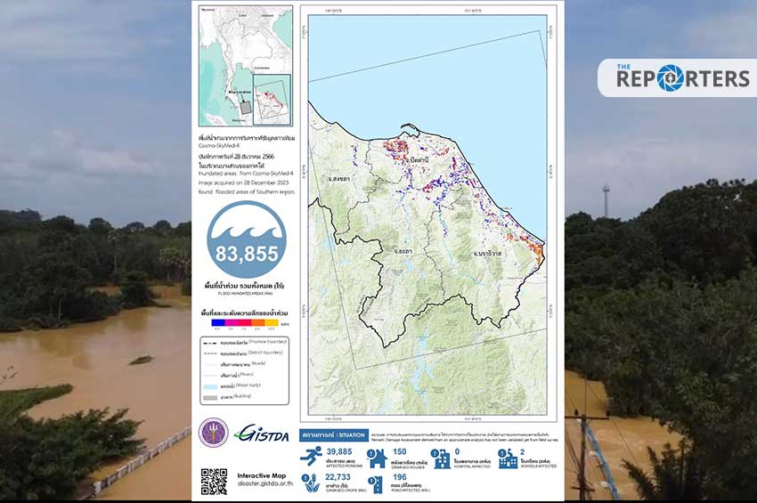 GISTDA เปิดภาพ 4 จว.ภาคใต้ จากดาวเทียม พบพื้นที่น้ำท่วม 8 หมื่นไร่ เกินครึ่งอยู่ใน จ.ปัตตานี