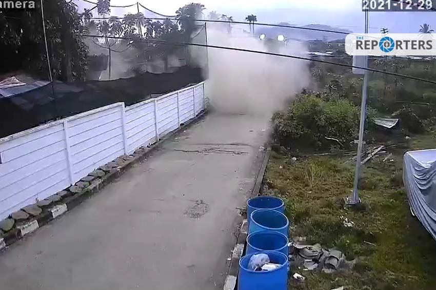 วันนี้ (29 ธ.ค. 64) ร.ต.อ.คมสัน ทีฆกาญจน์ รองสารวัตรสอบสวน สภ.รือเสาะ จ.นราธิวาส รับแจ้งมีเหตุคนร้ายลอบวางระเบิดที่บริเวณริมกำแพงรั้วด้านหลังของฐานปฏิบัติการหน่วยปฏิบัติการณ์พิเศษ นราธิวาสที่ 21 ซึ่งตั้งอยู่บ้านบาเละ ม.10 ต.รือเสาะ จึงพร้อมด้วย พ.ท.สุกฤษฐ์ กาญจนคลอด รอง ผบ.ฉก.กรมทหารพรานที่ 46 เจ้าหน้าที่ชุดเก็บกู้และทำลายวัตถุระเบิดอโณทัย และเจ้าหน้าที่กองพิสูจน์หลักฐาน จ.นราธิวาส รวมทั้งกำลังเจ้าหน้าที่ตำรวจทหารจำนวนหนึ่งรุดเดินทางไปตรวจสอบที่เกิดเหตุ พบที่บริเวณริมกำแพงข้างถนนซึ่งเป็นจุดที่คนร้ายลอบวางระเบิด ถูกอนุภาพของระเบิดทำให้เสาปูนซิเมนต์ของกำแพงรั้วที่ก่อสร้างแบบสำเร็จรูปหัก 1 ต้น และมีแผ่นปูนซิเมนต์ที่หล่อเป็นกำแพงรั้วแตกหัก 2 แผ่น รวมทั้งซากเศษชิ้นส่วนของระเบิดแสวงเครื่องที่คนร้ายประกอบใส่ไว้ในถังแก๊สปิกนิก หนัก 20 ก.ก. จุดชนวนด้วยวิทยุสื่อสาร ตกกระจายเกลื่อนพื้นถนนและพงหญ้ารกทึบริมทาง เจ้าหน้าที่จึงได้เก็บรวบรวมไว้เป็นหลักฐาน