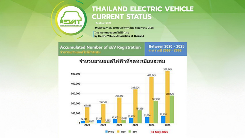 โดย รศ.ดร.ยศพงษ์ ลออนวล อาจารย์และนักวิจัยที่มีความเชี่ยวชาญด้านยานยนต์ไฟฟ้าและพลังงานยั่งยืน ในบทบาทผู้ก่อตั้งและเป็นนายกสมาคมยานยนต์ไฟฟ้าไทยคนแรก (EVAT) ชี้ให้เห็นสัญญาณบวกถึงความนิยมของรถ อีวีที่เพิ่มสูงขึ้นเรื่อยๆ ในแต่ละปี ว่า ยอดจดทะเบียนยานยนต์ไฟฟ้าที่กรมการขนส่งทางบกกระทรวงคมนาคม ตั้งแต่มกราคมถึงเดือนพฤษภาคม ปี 2568 มีจำนวนมากกว่า 53,000 คัน โดยเป็นรถยนต์ไฟฟ้าถึง 43,000 คันในขณะที่ยอดจดทะเบียนตลอดทั้งปี 2567 มีประมาณ 96,000 คัน ซึ่งจะเห็นว่าผ่านไปเพียง 5 เดือนของปี 2568 ยอดรถอีวี ทะลุเกินว่าครึ่งของตัวเลขปี 2567 ไปแล้ว โดยยอดสะสมทั้งหมดนับตั้งแต่มีรถยนต์ไฟฟ้าในประเทศไทยจนถึงเดือนพฤษภาคม 2568 มีทั้งหมด 280,000 คัน เป็นรถยนต์ไฟฟ้าประมาณ 200,000 คัน และรถมอเตอร์ไซค์ไฟฟ้าอีกเกือบ 80,000 คัน ที่เหลือเป็นรถประเภทอื่นๆ