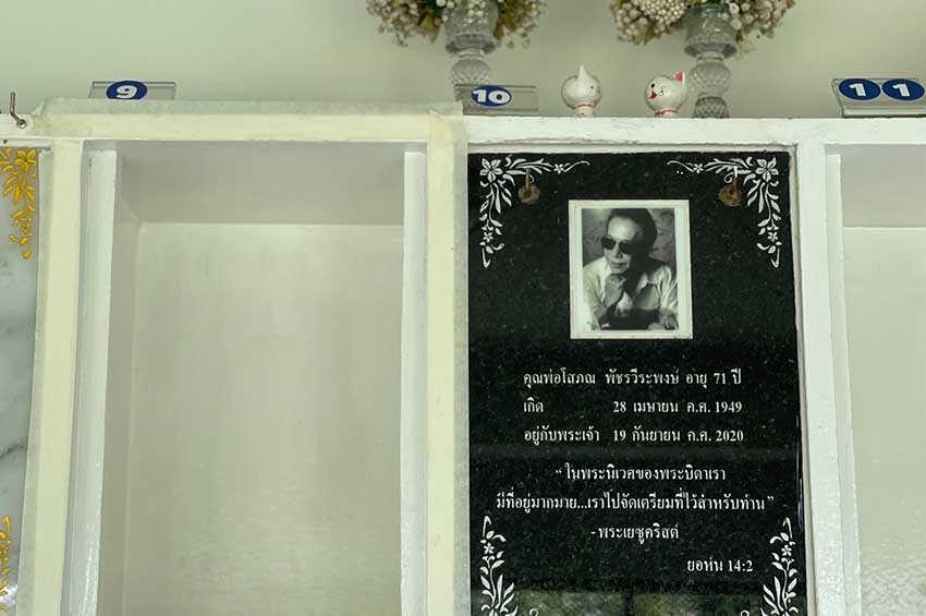 วันนี้ (28 พ.ค.65) เวลา 13.30 น. นางภนิดา ศิระยุทธโยธิน แม่แตงโม พร้อมด้วย นายมงคลกิตติ์ สุขสินธารานนท์ หัวหน้าพรรคไทยศรีวิไลย์ ในฐานะที่ปรึกษาผู้ทรงคุณวุฒิ และ น.ส.ภคอร จันทรคณา รองหัวหน้าพรรคไทยศรีวิไลย์ ในฐานะผู้ดูแลนางภนิดา เดินทางมาร่วมพิธีเก็บเถ้ากระดูกใส่โถบรรจุอัฐิ และนำไปตั้งไว้ที่ระเบียงอาลัย โซนกัลปังหา ช่องหมายเลข 9 ติดกับช่องหมายเลข 10 ข้างคุณพ่อโสภณ พัชรวีระพงษ์ ที่คริสจักรเมธอดิสท์ คลองสี่ ปทุมธานี