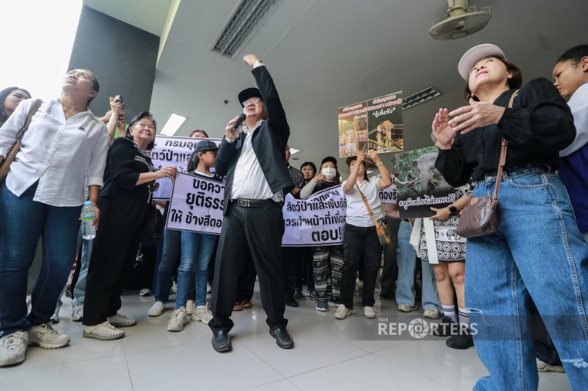 จิตอาสารักษ์ไทย พร้อมมวลชน รวมกลุ่ม ตะโกนขับไล่ อธิบดีฯ กรมอุทยาน กรณี ‘สีดอหูพับ’ พร้อมเรียกร้องให้สอบสัตวแพทย์เพื่อเอาผิด – หยุดเคลื่อนย้ายช้าง – สอบเอกสารสิทธิการถือครองที่ดิน