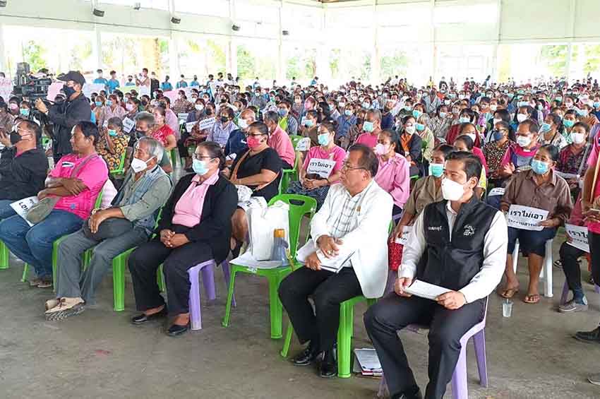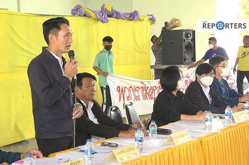 บรรยากาศเวทีรับฟังคามคิดเห็น มีประชาชนในพื้นที่ได้เดินทางมาร่วม รวมถึงเจ้าหน้าที่จากหน่วยงานต่างๆ จำนวนมาก โดยชาวบ้านได้เตรียมป้ายคัดค้านการก่อสร้างมาแสดงระหว่างการเปิดเวที ท่ามกลางตำรวจทั้งในและนอกเครื่องแบบ และเจ้าหน้าที่อาสา ที่คอยอำนวยความสะดวกและดูแลความสงบเรียบร้อย