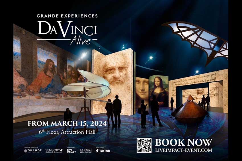นายเดวิน หม่า ผู้ร่วมก่อตั้ง Live Impact Events กล่าวว่า Live Impact Events เตรียมนำนิทรรศการเข้ามาให้คนไทยได้ชมอีกครั้ง กับนิทรรศการแสดงผลงานศิลปะดิจิทัลอิมเมอร์ซีฟ Da Vinci Alive Bangkok ครั้งแรกในเอเชีย โดยรวบรวมผลงานของเลโอนาร์โด ดา วินชี มาให้ชมระหว่างวันที่ 15 มีนาคม – 31 กรกฎาคม 2567 ณ Attraction Hall ชั้น 6