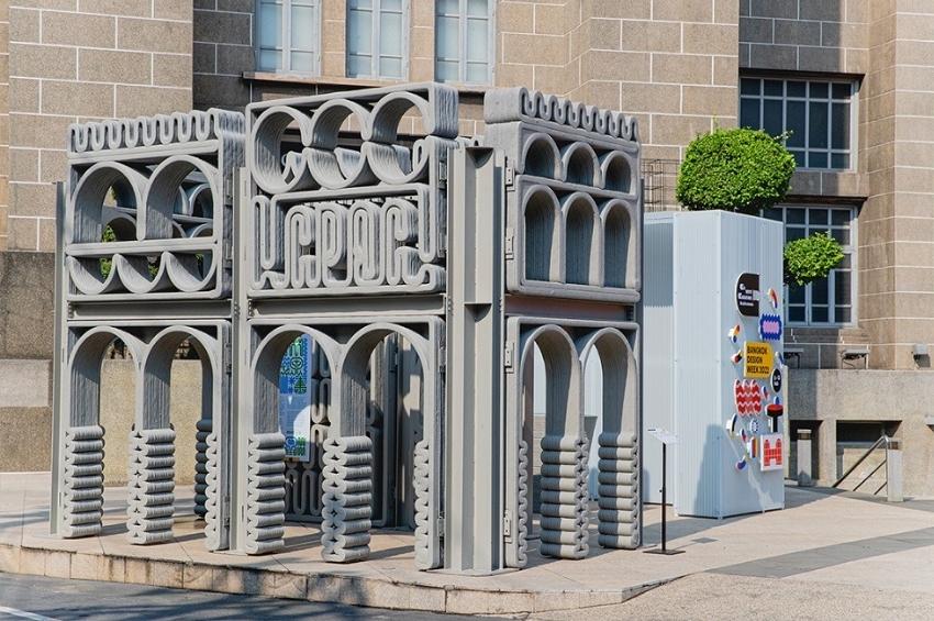 โดดเด่นด้วยเส้นสายที่เรียงเป็นแพทเทิร์นต่อกันเป็นชั้นๆ พร้อมนำเสนอออกมาในรูปแบบพาวิลเลียนผ่านกระบวนการก่อสร้างแบบ “Turn Waste to Value” ซึ่งเป็นการผลิตก่อนนำมาติดตั้ง