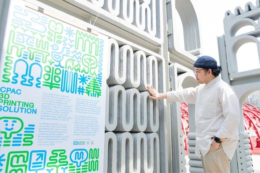 “CPAC 3D Printing Solution” เป็นนวัตกรรมการก่อสร้าง 3 มิติ จาก CPAC Green Solution ซึ่งใช้โปรแกรมคอมพิวเตอร์เข้ามาช่วยในเรื่องการออกแบบและควบคุมการก่อสร้างด้วยการใช้เครื่องจักร 3D Printer สามารถปริ๊นท์ขึ้นรูปผนังอาคารพื้นที่มากกว่า 150 ตารางเมตร ในระยะเวลา 7 วัน เป็นการลดระยะเวลาก่อสร้างลง 66% ลดการใช้แรงงานน้อยลง 50% ถือเป็นการยกระดับอุตสาหกรรมก่อสร้างของประเทศไทย และยังนำมาประยุกต์ใช้ในการสร้างสรรค์ผลิตภัณฑ์คอนกรีตตกแต่งอื่นๆ ได้ อาทิเฟอร์นิเจอร์ ฯลฯ นับว่าเป็นอีกหนึ่งผลงานสร้างสรรค์ทั้งในเรื่องของการก่อสร้าง (Construction) และการตกแต่ง (Decorate) ที่นอกจากจะเป็นมิตรกับสิ่งแวดล้อมแล้ว ยังตอบโจทย์เหล่าดีไซเนอร์และนักออกแบบยุคใหม่ให้สามารถสร้าง Material ของตัวเองได้แบบไร้ขีดจำกัด”