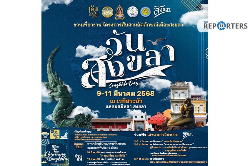 จังหวัดสงขลา ชวนเที่ยวงานโครงการสืบสานอัตลักษณ์เมืองสงขลา “วันสงขลา” 9 – 11 มีนาคม 2568 ณ เวทีสระบัว แหลมสมิหลาสงขลา โดยมีกิจกรรมต่างๆ มากมาย อาทิ งานบุญ พิธีเวียนเทียน ณ พระธาตุเจดีย์หลวงเขาตังกวน พิธีทำบุญตักบาตรบรรพชนคนสงขลา พิธีสมโภชเสาหลักเมืองสงขลา