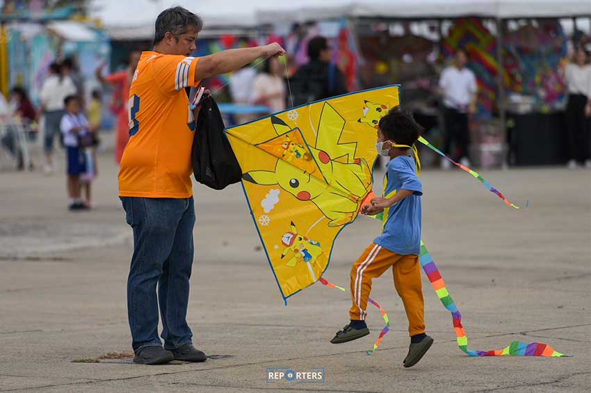 วันนี้ (17 พ.ค. 67) บริเวณทะเลสาบเมืองทองธานี ชาวกรุงเทพฯ และปริมณฑลพาลูกหลานมาร่วมกิจกรรมเล่นว่าวหลากสีสันอวดตัวกันบนท้องฟ้าริมทะเลสาบเมืองทองธานี ทั้งว่าวไทย และว่าวนานาชาติ พร้อมด้วยกิจกรรมต่างๆ อาทิ ระบายสีประดิษฐ์ว่าว จัดแสดงว่าวไทย และนานาชาติ