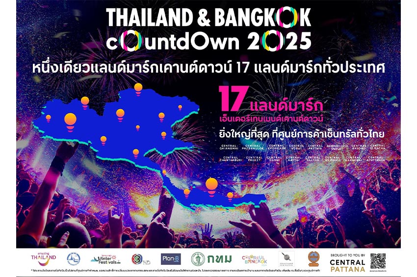 สำหรับจุดฉลองเคานต์ดาวน์พร้อมกันทั่วประเทศในงาน centralwOrld Bangkok Countdown 2025 The original และ Thailand Countdown 2025 ณ 17 แลนด์มาร์กศูนย์การค้าเซ็นทรัล ทั่วไทย ได้แก่
