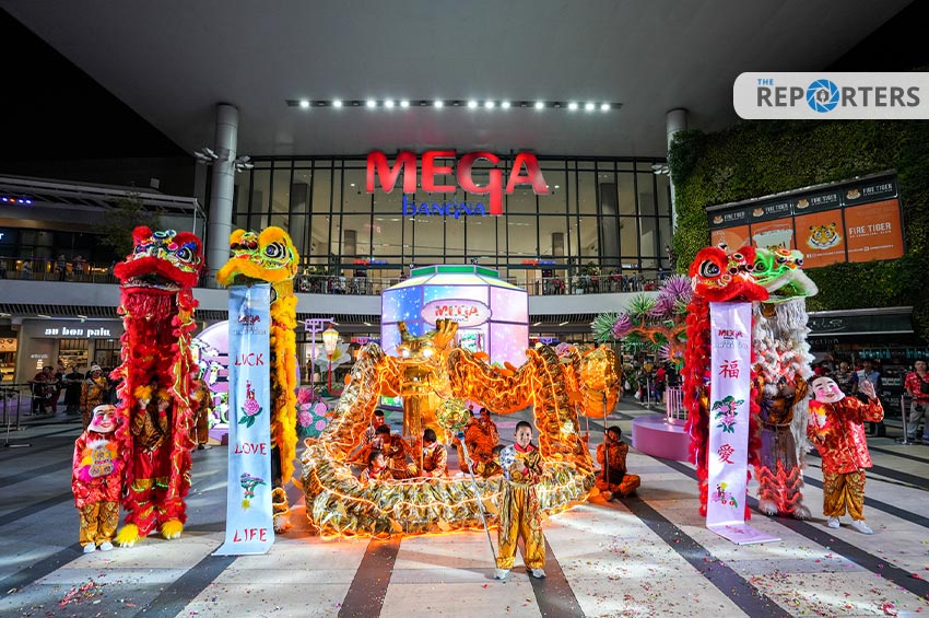 ศูนย์การค้าเมกาบางนา ร่วมฉลองตรุษจีนอย่างยิ่งใหญ่ ในงาน MEGA CHINESE NEW YEAR 2025 ภายใต้แนวคิด LUCK – LOVE – LIFE เสริมโชค เติมรัก พร้อมรับชีวิตดีๆ ในปีมะเส็ง ในปีนี้เมกาบางนาร่วมอำนวยพรมอบความเป็นสิริมงคลในเทศกาลตรุษจีนด้วยไฮไลท์การแสดงสุดพิเศษ กับการแสดงมังกรทองกับสิงโตประดับไฟ LED พร้อมนาจา จากคณะสิงโตมังกรทอง ดีกรีแชมป์มังกรทองแห่งประเทศไทย และเจ้าของแชมป์ถ้วยพระราชทาน 3 สมัย ที่ได้ผสมผสานเทคนิคการทำมังกรติดไฟ LED มาเพิ่มสีสันในการแสดงภาคกลางคืนเป็นเจ้าแรกในประเทศไทย โดยเป็นโชว์สุดพิเศษที่หาชมได้ยาก ด้วยความยิ่งใหญ่อลังการของมังกรทอง LED ขนาดยาว 35 เมตร มาพร้อมกับสิงโต LED สวยงามโดดเด่นในยามกลางคืน ซึ่งเป็นสัญลักษณ์ของพลังอันยิ่งใหญ่ ความเจริญรุ่งเรือง มั่งคั่งร่ำรวย โดยขบวนมังกรได้ทำการแสดงท่ามกลางผู้ชมเนื่องแน่น ณ เมน เอนทรานซ์ พร้อมส่งมอบความโชคดีให้กับลูกค้าทั่วทั้งศูนย์การค้าเมกาบางนาด้วย
