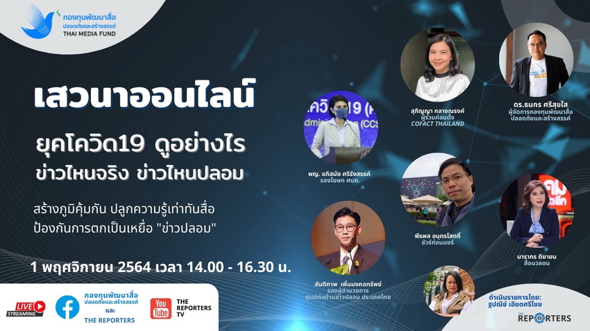 สดทาง Facebook กองทุนพัฒนาสื่อปลอดภัยและสร้างสรรค์ และ The Reporters และ YouTube: The Reporters TV