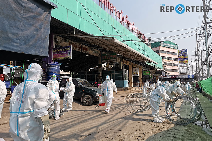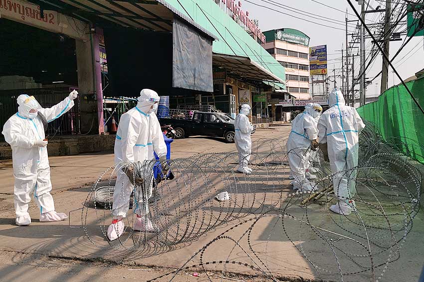 วันนี้ (3 ก.พ. 64) เมื่อเวลา 10.00 น. ที่ตลาดกลางกุ้ง ตำบลมหาชัย อำเภอเมือง จังหวัดสมุทรสาคร เจ้าหน้าที่ทหารจากค่ายกำแพงเพชรอัครโยธิน เดินทางเข้ามาเก็บลวดหนามหีบเพลง ออกจากแนวกั้นบริเวณด้านหน้าตลาดออก เพื่อนำไปเก็บรักษาไว้ที่ค่ายฯ หลังพื้นที่ตลาดกลางกุ้งเปิดให้เข้าออกได้ตามปกติแล้ว