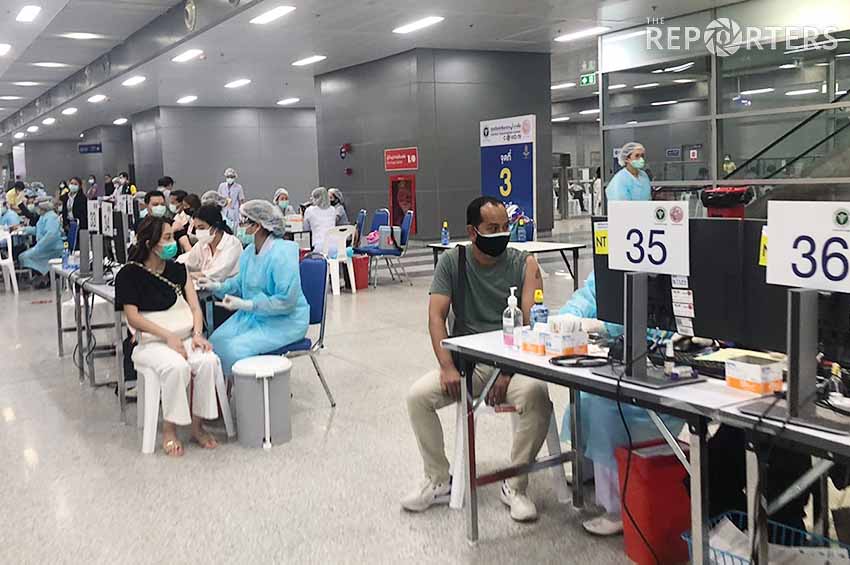 วันนี้ (7 มิ.ย. 64) นายแพทย์โอภาส การย์กวินพงศ์ อธิบดีกรมควบคุมโรค กล่าวว่า ผลการดำเนินการคิกออฟฉีดวัคซีนโควิด-19 จำนวนมากพร้อมกันทั่วประเทศครึ่งวันแรก รวม 986 จุดฉีดทั่วประเทศ ข้อมูลถึงเวลา 12.00 น. พบว่ามีประชาชนเข้ารับการฉีดวัคซีนทั้งหมด 143,116 คน แบ่งเป็นผู้มีอายุมากกว่า 60 ปี 73,273 คน กลุ่ม 7 โรคเรื้อรังอายุน้อยกว่า 60 ปี 21,924 คน อสม.และบุคลากรทางการแพทย์ 12,081 คน และอื่นๆ โดยวันนี้พลเอกประยุทธ์ จันทร์โอชา นายกรัฐมนตรี พร้อมด้วยรัฐมนตรีกระทรวงต่างๆ ได้ตรวจเยี่ยมศูนย์ฉีดวัคซีนกลางบางซื่อ ซึ่งเป็นจุดฉีดวัคซีนที่ใหญ่ที่สุดของประเทศไทย