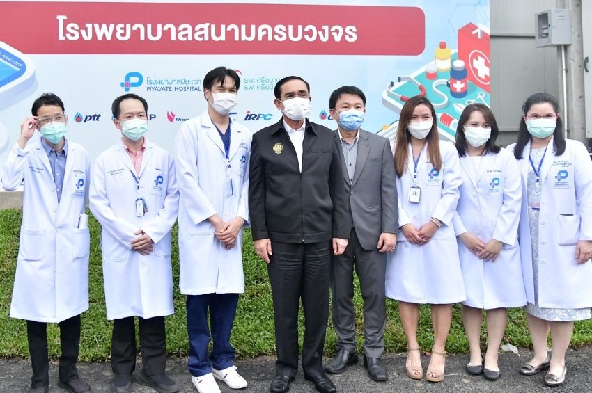 วันนี้ (9 ก.ย. 64) เมื่อเวลา 15.30 น. ณ โรงพยาบาลปิยะเวท เขตห้วยขวาง กรุงเทพฯ พลเอก ประยุทธ์ จันทร์โอชา นายกรัฐมนตรีและรัฐมนตรีว่าการกระทรวงกลาโหม ตรวจเยี่ยมโรงพยาบาลสนามสําหรับผู้ป่วยโควิด-19 ระดับสีแดง (ICU) ภายใต้โครงการลมหายใจเดียวกัน ซึ่งเป็นส่วนหนึ่งของการจัดตั้งหน่วยคัดกรองและโรงพยาบาลสนามครบวงจร (End-to-End) โดยบริษัท ปตท. จำกัด (มหาชน) และบริษัทในกลุ่มร่วมกับกระทรวงสาธารณสุข สถาบันป้องกันควบคุมโรคเขตเมือง (สปคม.) สำนักงานหลักประกันสุขภาพแห่งชาติ (สปสช.) และพันธมิตรทางการแพทย์ ได้แก่ มูลนิธิโรงพยาบาลในเครือบางปะกอกฯ และโรงพยาบาลปิยะเวท ให้บริการแบบครบวงจร โดยมีเจตนารมณ์ในการช่วยเหลือประชาชน รองรับจำนวนผู้ป่วยที่ยังคงมีตัวเลขที่สูงขึ้นและแบ่งเบาภาระของภาครัฐ