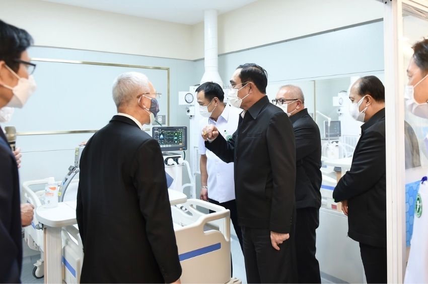 จากนั้น นายกรัฐมนตรีได้เยี่ยมชมโรงพยาบาลสนาม ICU โครงการลมหายใจเดียวกัน พร้อมเยี่ยมชมความพร้อมภายในโรงพยาบาลอีกด้วย