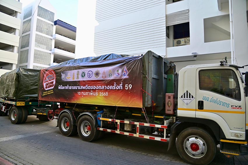 สำหรับการเผาทำลายยาเสพติดของกลางจะขนย้ายจากคลังเก็บรักษายาเสพติดของกลางนำไปเผาทำลายที่ บริษัท อัคคีปราการ จำกัด (มหาชน) นิคมอุตสาหกรรมบางปู จ.สมุทรปราการ ภายใต้มาตรการรักษาความปลอดภัยเข้มงวดตลอดเส้นทาง ใช้เตาเผาขยะอันตรายอุณหภูมิสูง 1,200 องศาเซลเซียส ด้วยเชื้อเพลิงก๊าซธรรมชาติ พร้อมระบบควบคุมมลพิษที่เหลือจากการเผาทำลาย และมีการตรวจสอบควบคุมสารมลพิษไม่ให้เกิดผลกระทบต่อสิ่งแวดล้อม โดยการเผาทำลายจะดำเนินการต่อเนื่อง 36-38 ชั่วโมง