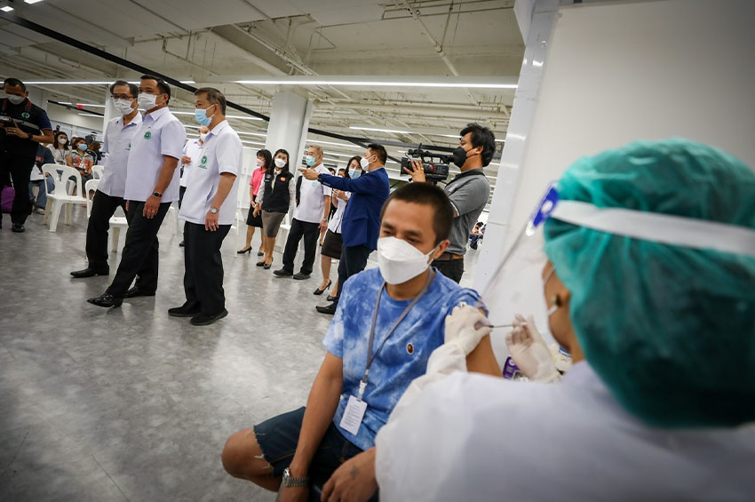 วันนี้ (25 ม.ค. 65) ที่ศูนย์สรรพสินค้า เอ็ม บี เค เซ็นเตอร์ หรือ มาบุญครอง ผู้สื่อข่าวรายงานว่านายอนุทิน ชาญวีรกูล รองนายกรัฐมนตรีและรัฐมนตรีว่าการกระทรวงสาธารณสุขพร้อมด้วยคณะผู้บริหารได้เดินทางมาตรวจเยี่ยมจุดให้บริการวัคซีนโควิด-19 ซึ่งเป็นความร่วมมือระหว่างกระทรวงสาธารณสุข และภาคเอกชน