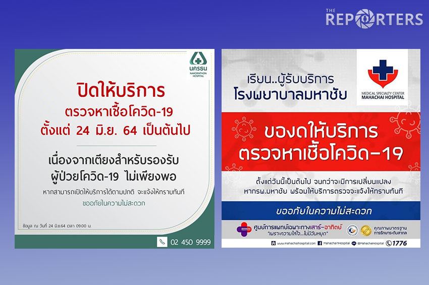 หลาย รพ. แจ้งงดให้บริการตรวจโควิด-19 ชั่วคราว