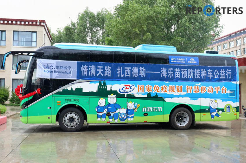 ทั้งนี้ รถฉีดวัคซีนป้องกันโรคโควิด-19 คันดังกล่าว บริจาคโดยเจ้าหน้าที่จากเมืองชิงเต่าทางตะวันออกของจีน ซึ่งเข้าร่วมโครงการจับคู่ช่วยเหลือในทิเบต ร่วมกับบริษัท ชิงเต่า ไห่เอ่อร์ ไบโอเมดิคอล จำกัด (Qingdao Haier Biomedical Co.) โดยตัวรถมีการติดตั้งทางเทคนิคเพื่อปรับให้เข้ากับสภาพแวดล้อมที่ราบสูงและเคลื่อนที่บนถนนขรุขระได้อย่างราบรื่น